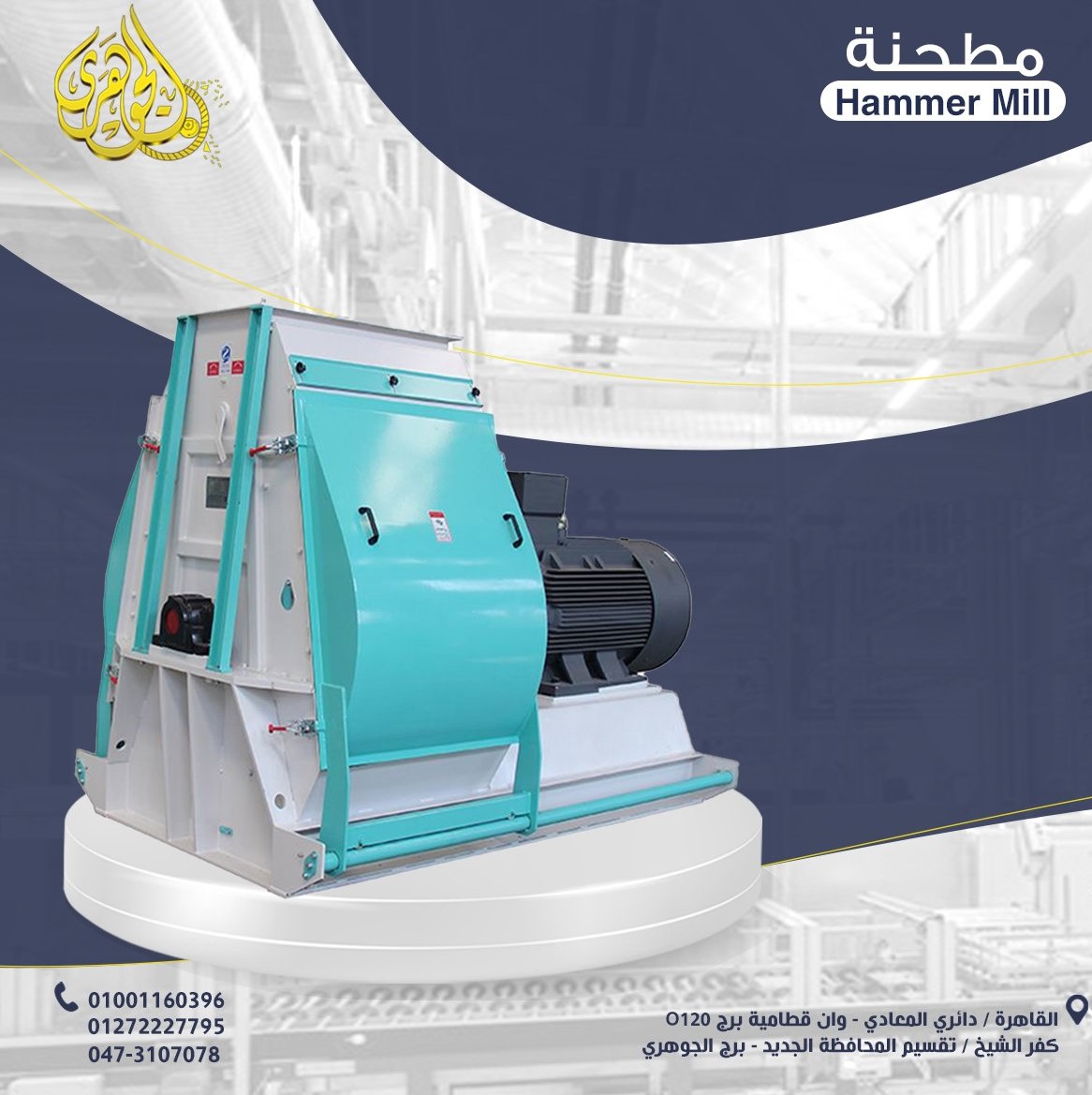 مطحنة علف الأسماك الطافيه 📌تُعد مطحنة علف السمك الطافي إحدى المعدات الأساسية في خطوط إنتاج الأعلاف المائية، حيث تُستخدم في طحن المواد الخام مثل الحبوب والبقوليات ومركزات البروتين إلى مسحوق ناعم ومتجانس، مما يُسهل عمليات الخلط والتكوير اللاحقة، ويضمن الحصول على علف عالي الجودة. المكونات الرئيسية: وحدة تغذية – غرفة طحن – موتور رئيسي – منخل/غربال – نظام تفريغ – هيكل معدني – نظام حماية. المزايا: • طحن ناعم ومتجانس. • متانة وتشغيل مستمر. • سهولة التشغيل والصيانة. خط إنتاج أعلاف,مطحنة,سمك طافى,شواكيش،هامر،الجوهري يمكنكم الاتصال بنا على: 002-01001160396 002-01272227795 002-047-3107078 او زيارة موقعنا : http://www.elgoharyeg.com أو زيارة صفحتنا علي الفيس بوك: https://ar-ar.facebook.com/elgoharry/ شركة الجوهري للتنمية الصناعية والزراعية العنوان: جمهورية مصر العربية القاهرة دائري المعادي وان قطامية برج207 الدور الاول شقه105 العنوان كفر الشيخ دوران47خلف سيرميكا رويال برج الجوهرى